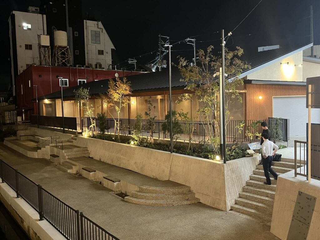 帝国座テラスは植栽も完成して今日はライトアップの調整です