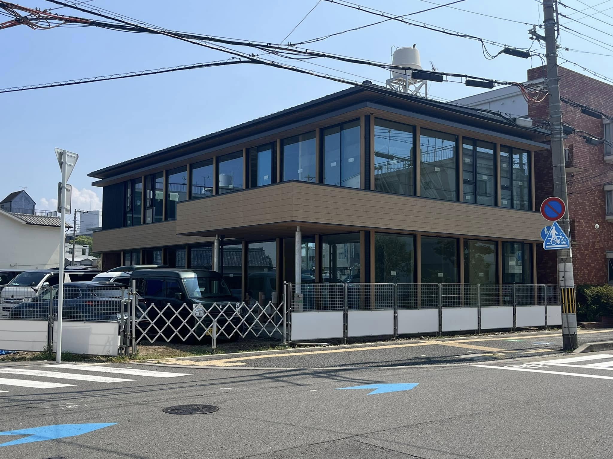 ミラーガラスのシャープな外観が目立っています。事務所内部も解放感があるモダンな雰囲気になっています。