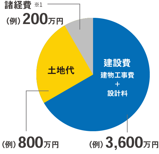 家づくりにかかるお金は「家」の価格だけではありません。例のように、他にも「土地」、「諸経費」の費用がかかります。
